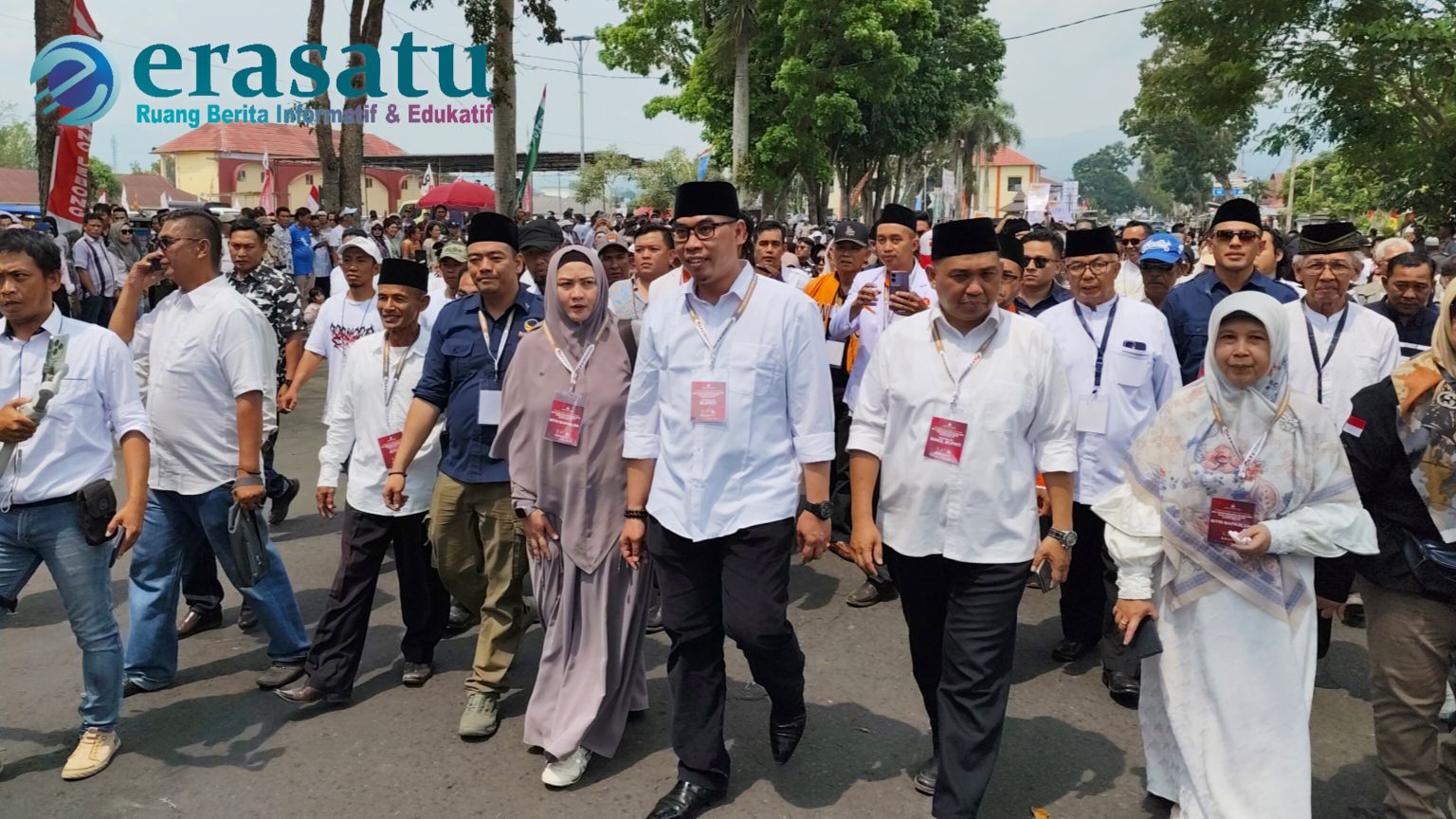 Rejang Lebong- Pasangan Bakal Calon Bupati- Wakil Bupati Rejang Lebong Hendra Wahyudiansyah- Rizal Apriansyah diantar ribuan orang pendukung saat mendaftar ke Kantor KPU Rejang Lebong Kamis siang (29/8/2024).