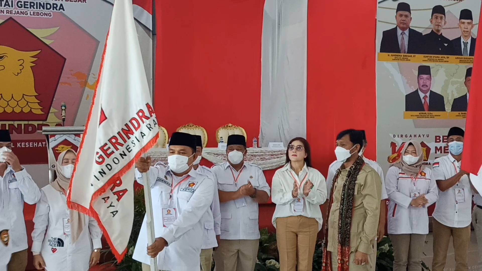 Penyerahan bendera patakan sebagai simbol pergantian Ketua DPC Partai Gerindra Rejang Lebong yang digelar di Gedung Serba Guna (GSG) Lapangan Setia Negara Tersebut bersamaan dengan acara sarasehan Kader DPC Partai Gerindra, sekaligus memperingati ulang tahun Partai Gerindra ke 14 tahun.