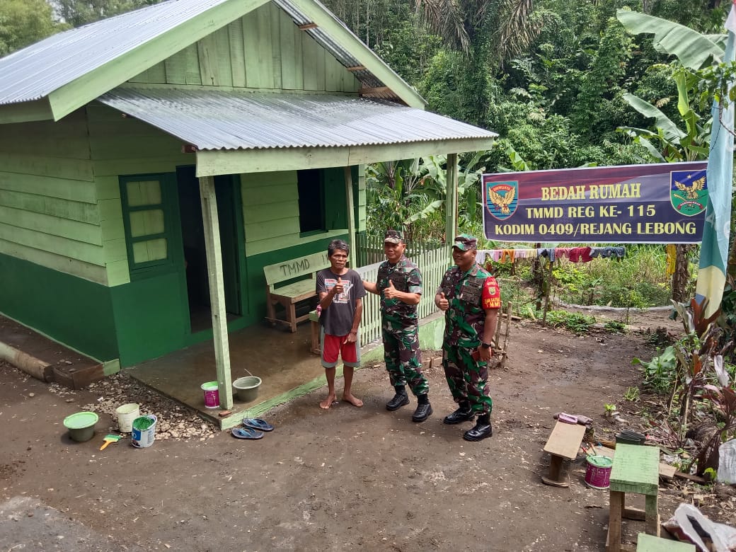 Rejang Lebong – Kasrem 041 Garuda Emas (Gamas) Bengkulu, Kolonel Inf Veri Sudijanto Sudin meninanjau langsung pelaksaan TMMD Reg-115 Kodim 0409 Rejang Lebong di Desa Air Lanang Kecamatan Curup Selatan.